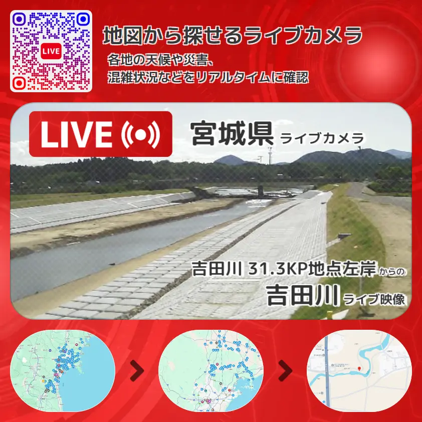 宮城県 「吉田川」ライブ映像(吉田川 31.3KP地点左岸 設置カメラ) ライブカメラ 監視カメラ