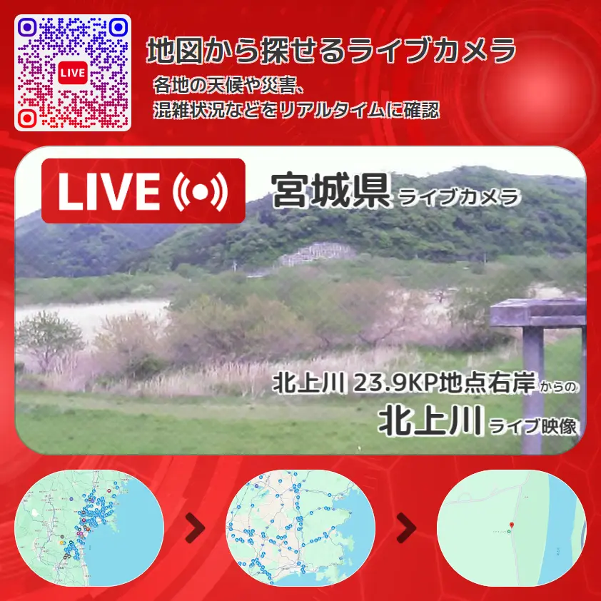 北上川 23.9KP地点右岸から、北上川が確認できるライブカメラです。