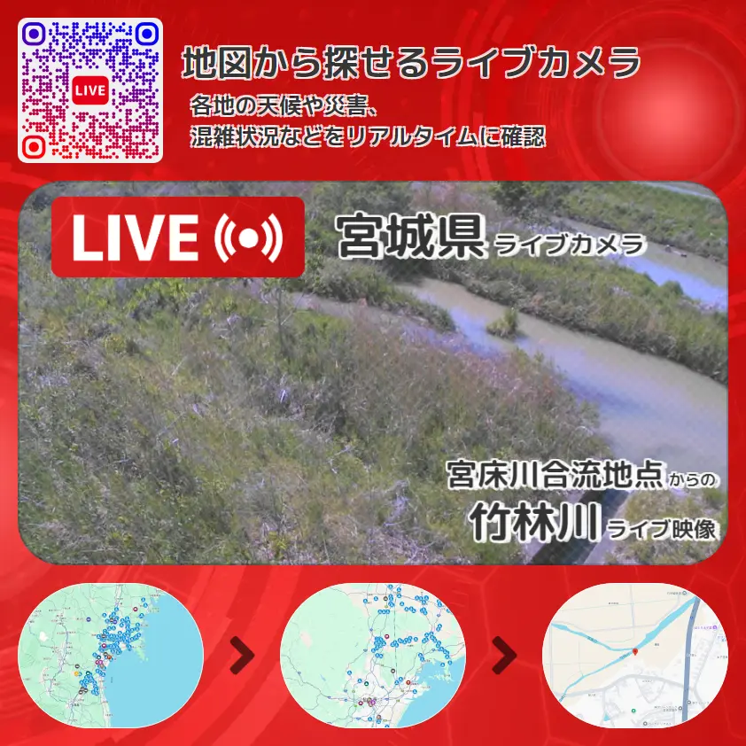 宮床川合流地点から、竹林川が確認できるライブカメラです。