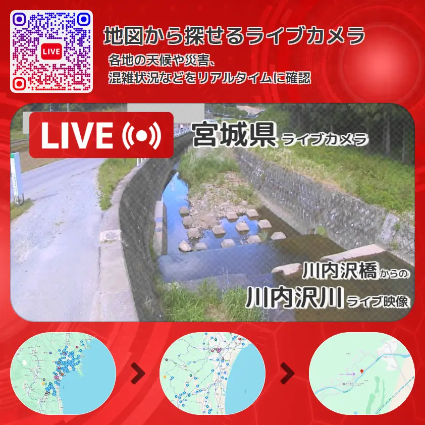 宮城県 「川内沢川」ライブ映像(川内沢橋 設置カメラ) ライブカメラ 監視カメラ