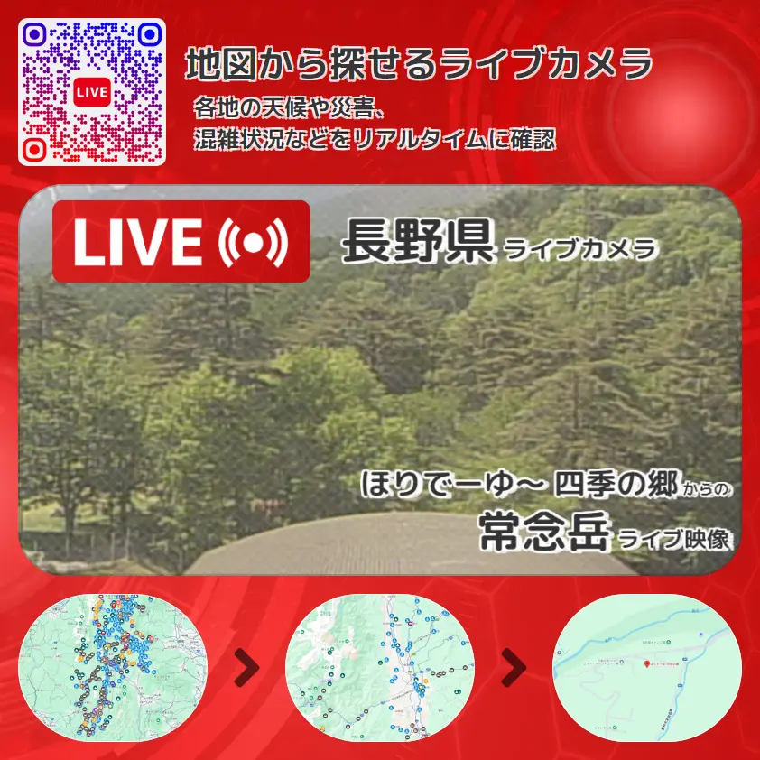 常念岳の他に、常念山や周辺の気象状況も併せてチェックすることが可能で、台風・大雨・地震などの災害による被害状況も把握することができます。