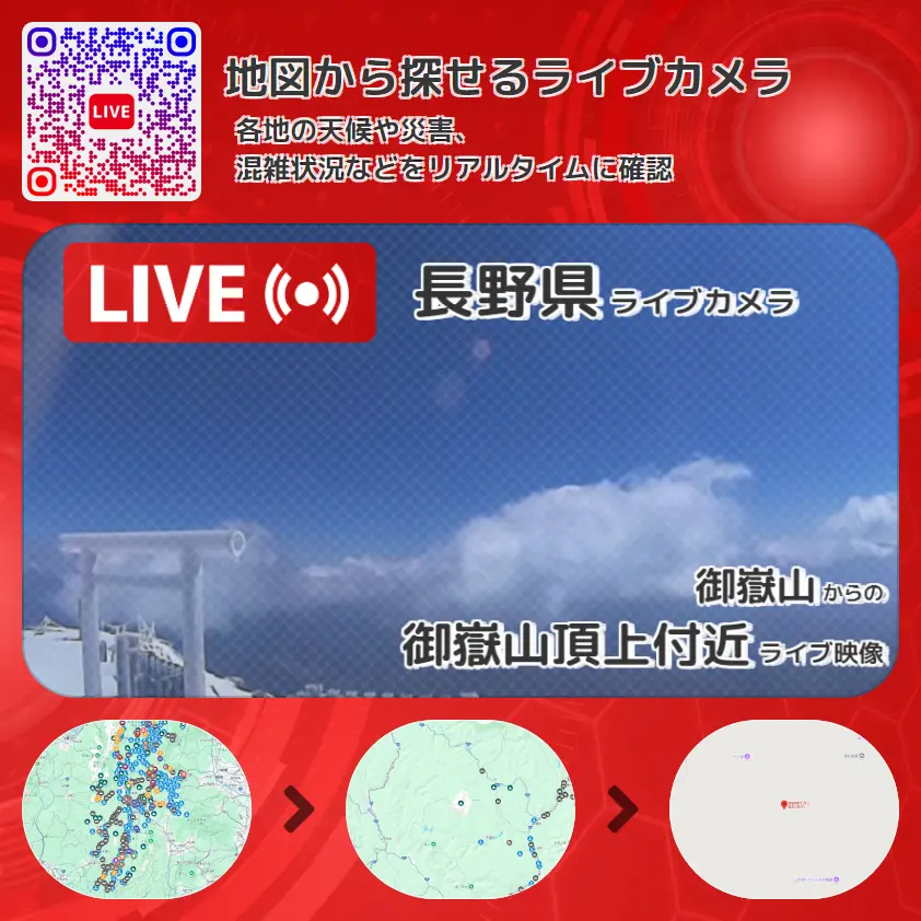 御嶽山頂上付近の他に、御嶽神社頂上奥社(黒沢奥社)や周辺の気象状況も併せてチェックすることが可能で、台風・大雨・地震などの災害による被害状況も把握することができます。