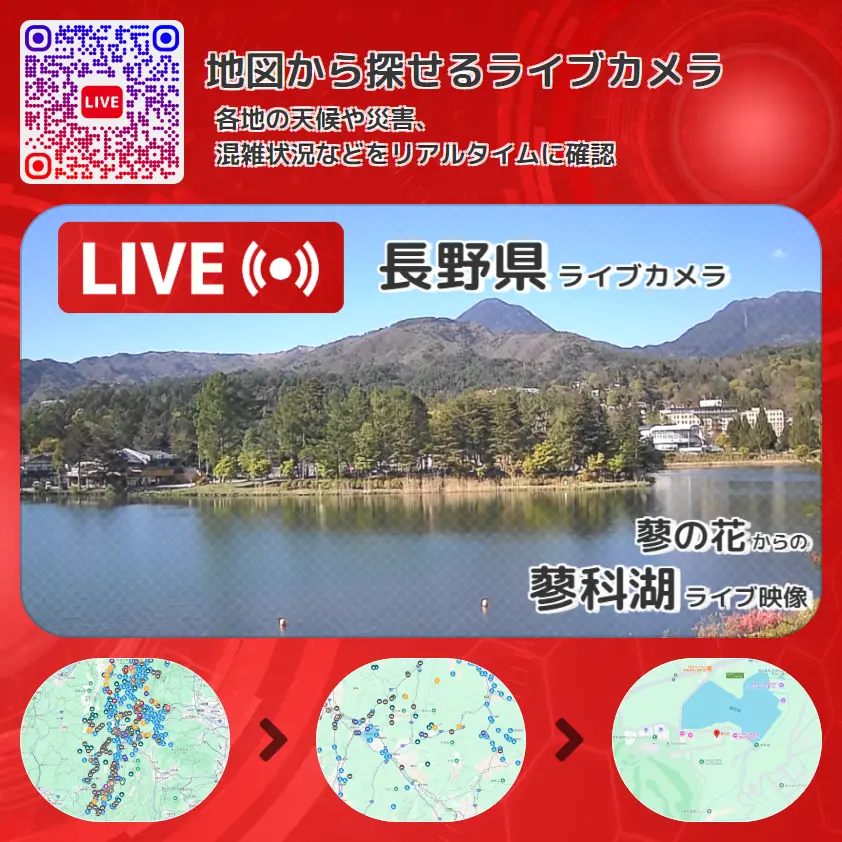 蓼科湖の他に、蓼科山や周辺の気象状況も併せてチェックすることが可能で、台風・大雨・地震などの災害による被害状況も把握することができます。
