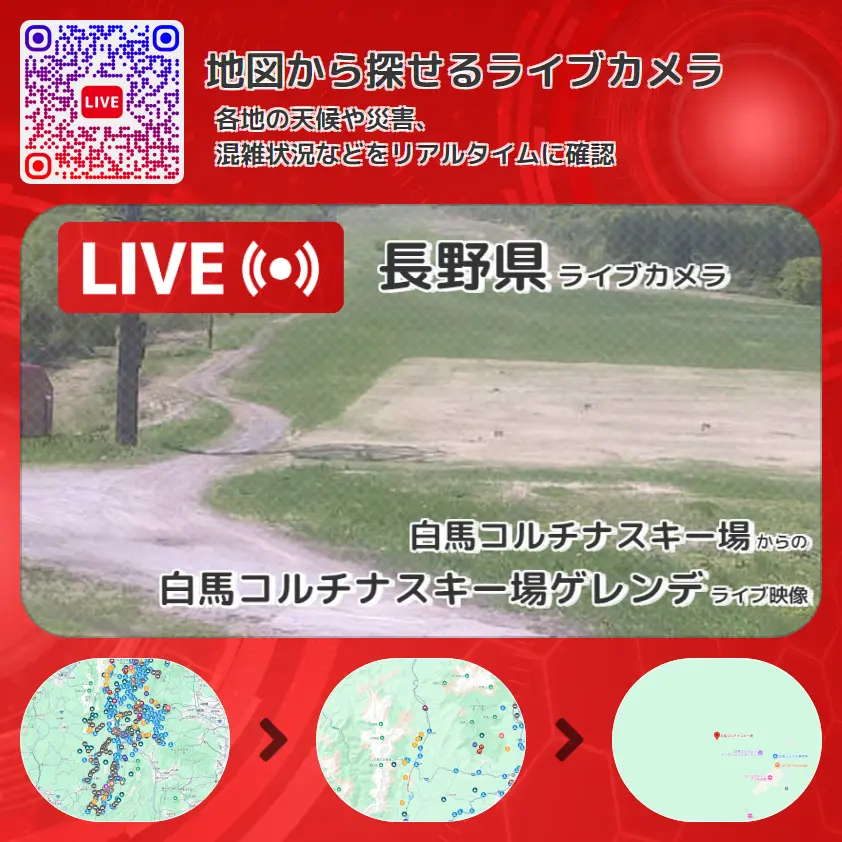 周辺の気象状況も併せてチェックすることが可能で、台風・大雨・地震などの災害による被害状況も把握することができます。
