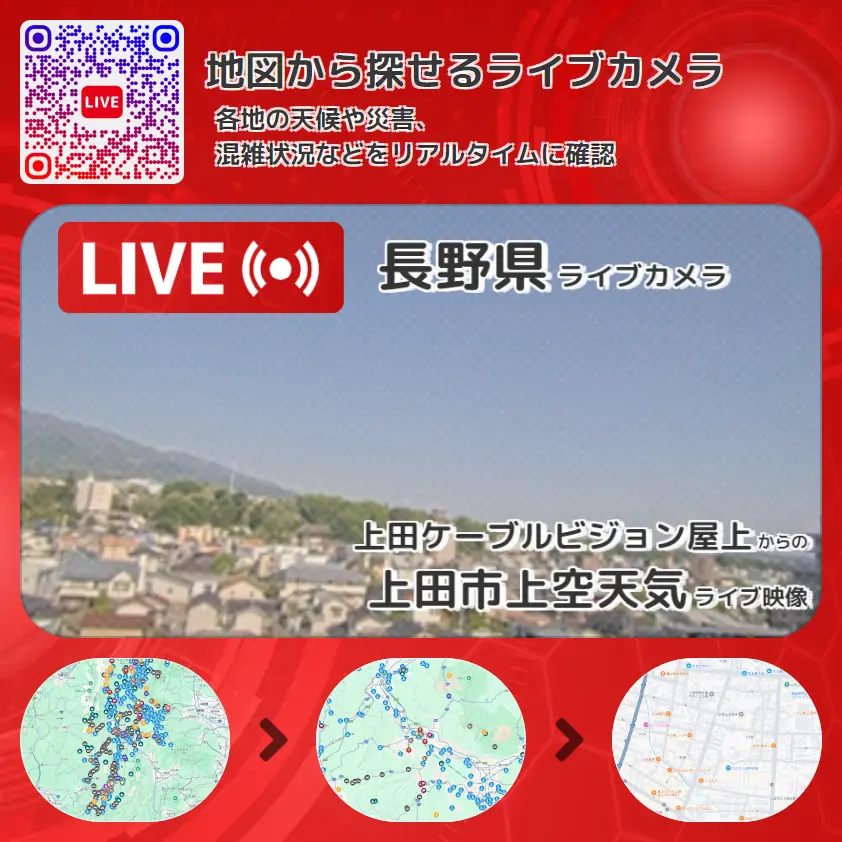 上田市上空天気の他に、初日の出や周辺の気象状況も併せてチェックすることが可能で、台風・大雨・地震などの災害による被害状況も把握することができます。