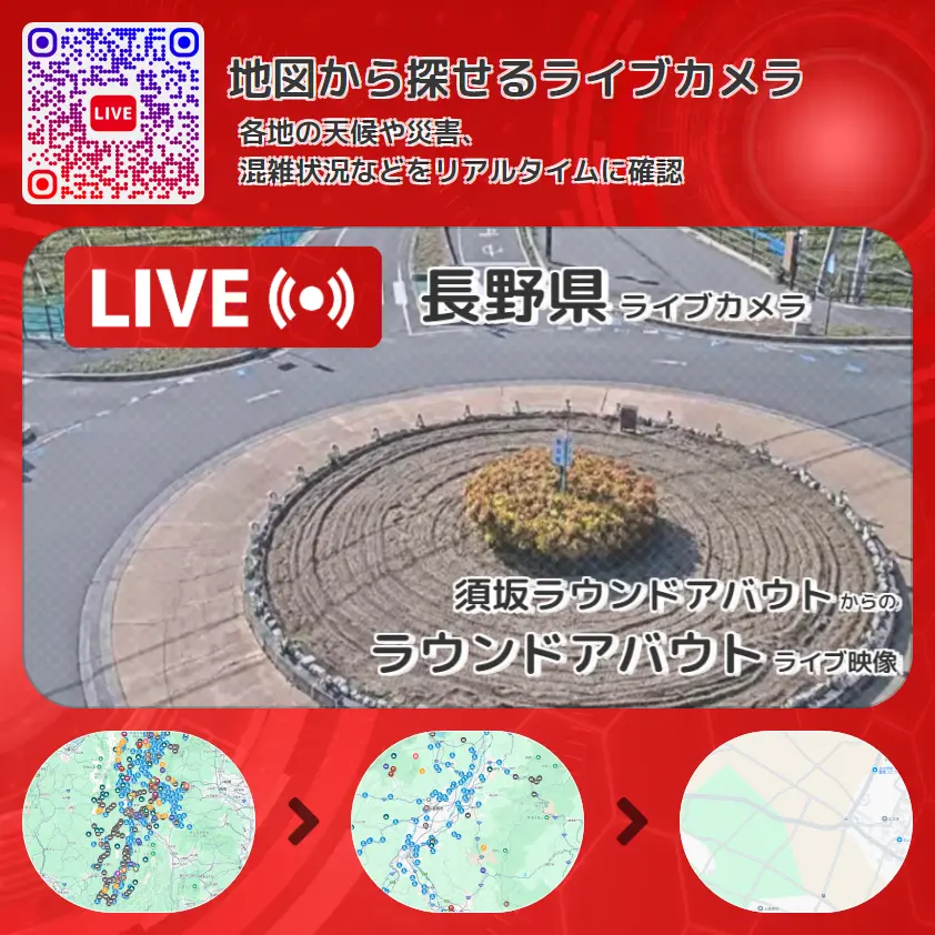 須坂ラウンドアバウトから、ラウンドアバウト(環状交差点)が確認できるライブカメラです。