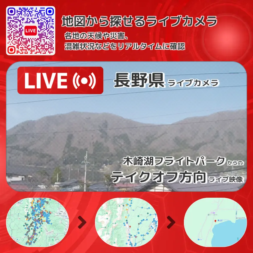 木崎湖フライトパーク(集落上)から、テイクオフ方向が確認できるライブカメラです。