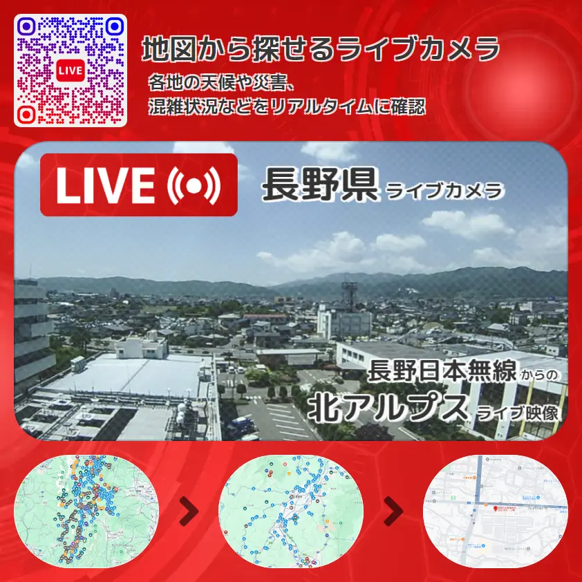 北アルプスの他に、北信五岳や周辺の気象状況も併せてチェックすることが可能で、台風・大雨・地震などの災害による被害状況も把握することができます。