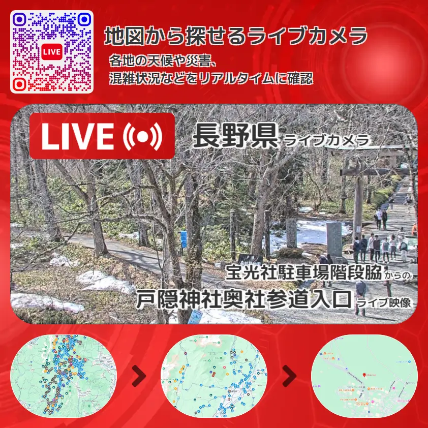 長野県 「戸隠神社奥社参道入口」ライブ映像(宝光社駐車場階段脇 設置カメラ) ライブカメラ 監視カメラ