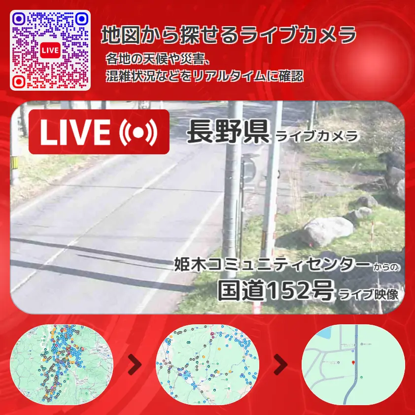長野県 「国道152号」ライブ映像(姫木コミュニティセンター 設置カメラ) ライブカメラ 監視カメラ
