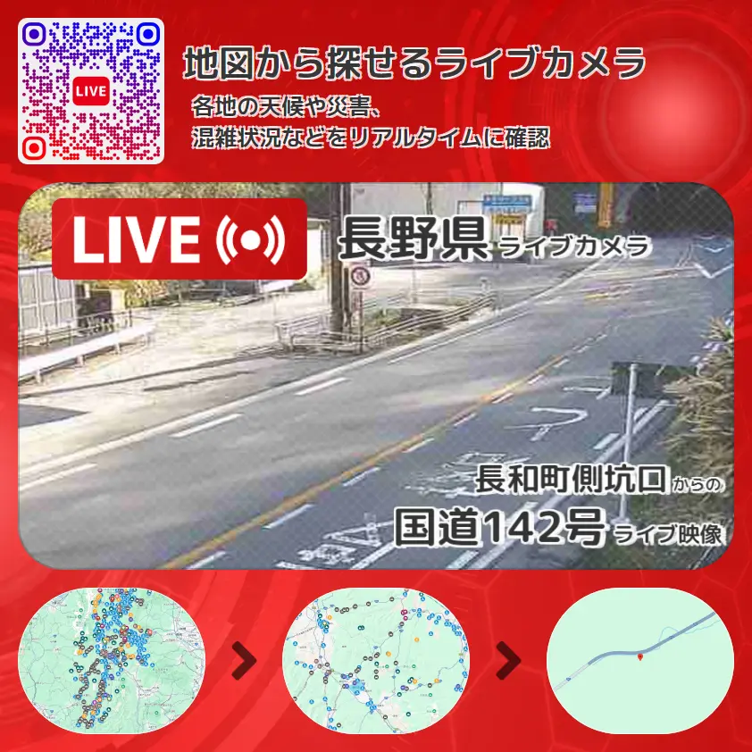 国道142号(新和田トンネル有料道路)の他に、新和田トンネル(新和田隧道)や周辺の気象状況も併せてチェックすることが可能で、台風・大雨・地震などの災害による被害状況も把握することができます。