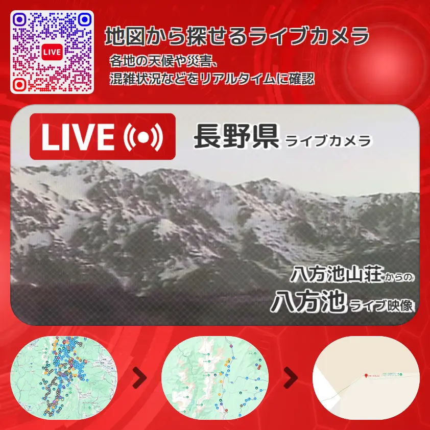 八方池の他に、八方山や周辺の気象状況も併せてチェックすることが可能で、台風・大雨・地震などの災害による被害状況も把握することができます。