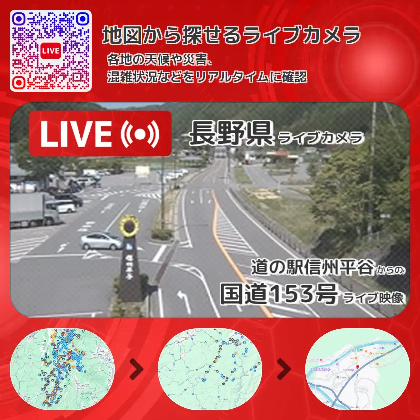 道の駅信州平谷から、国道153号(三州街道)が確認できるライブカメラです。