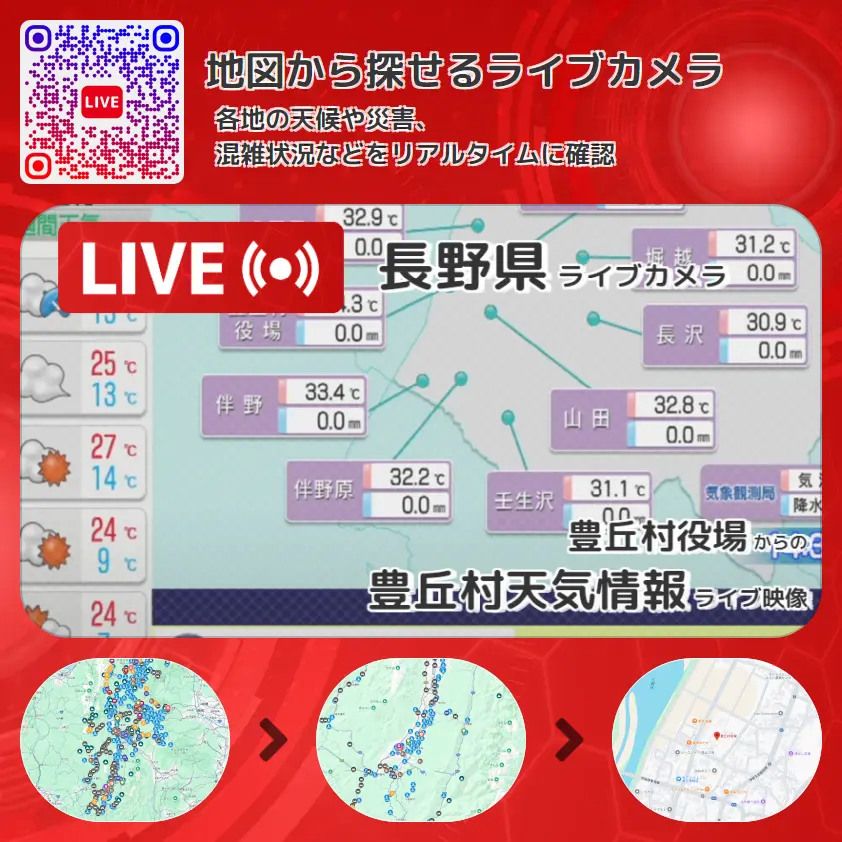 豊丘村役場から、豊丘村天気情報(村内9地点気象情報)が確認できるライブカメラです。