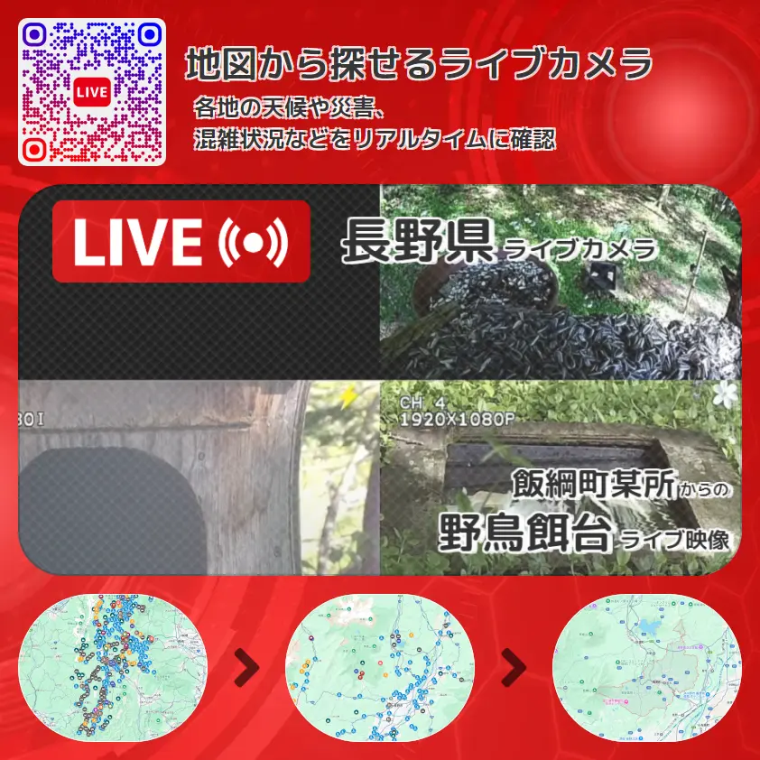 周辺の気象状況も併せてチェックすることが可能で、台風・大雨・地震などの災害による被害状況も把握することができます。