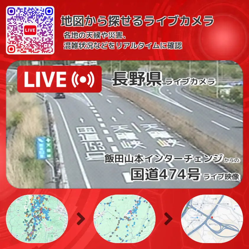 飯田山本インターチェンジ(飯田山本IC)から、国道474号が確認できるライブカメラです。