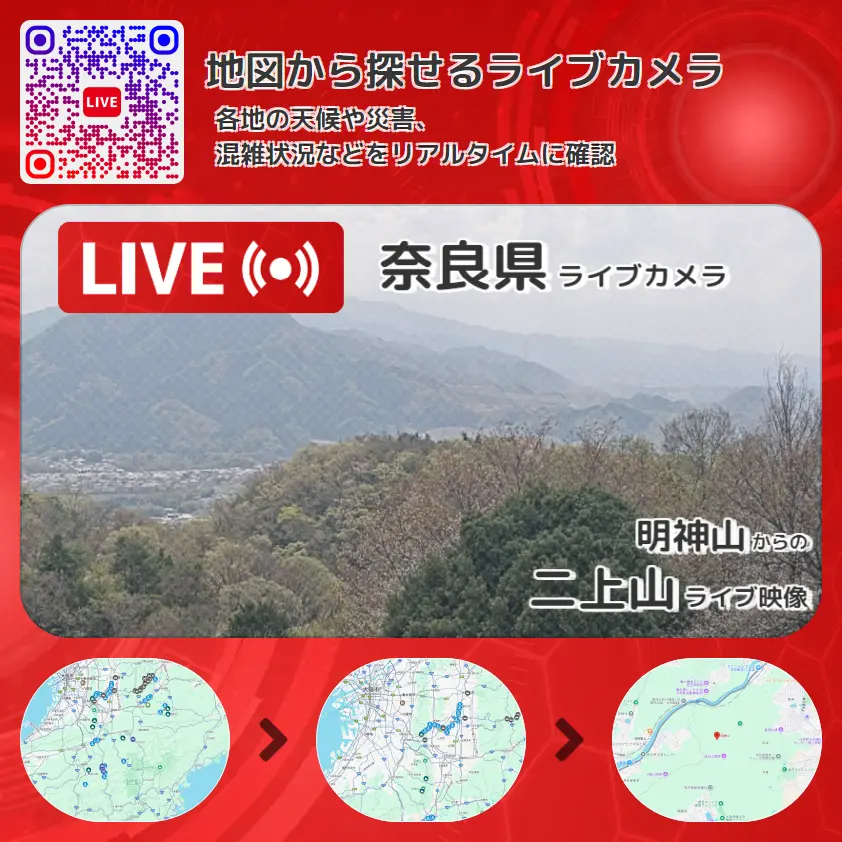 二上山の他に、大和葛城山や周辺の気象状況も併せてチェックすることが可能で、台風・大雨・地震などの災害による被害状況も把握することができます。