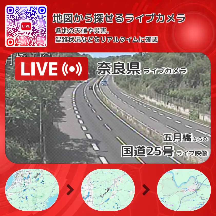奈良県 「国道25号」ライブ映像(五月橋 設置カメラ) ライブカメラ 監視カメラ
