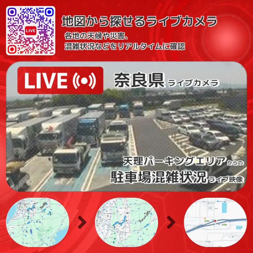 奈良県 「駐車場混雑状況」ライブ映像(天理パーキングエリア 設置カメラ) ライブカメラ 監視カメラ