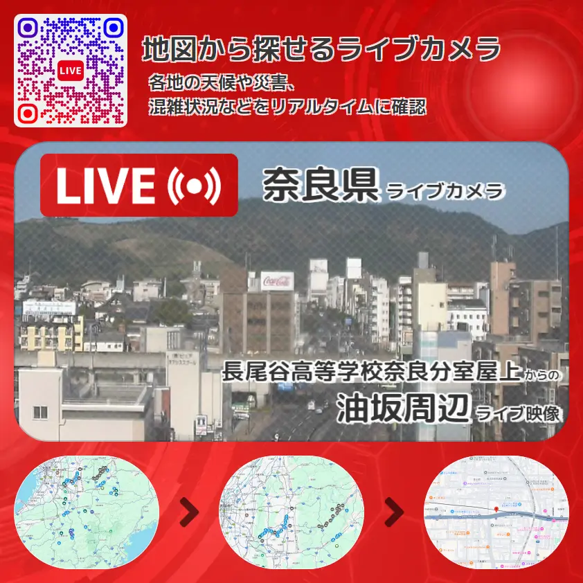 長尾谷高等学校奈良分室屋上から、油坂周辺が確認できるライブカメラです。
