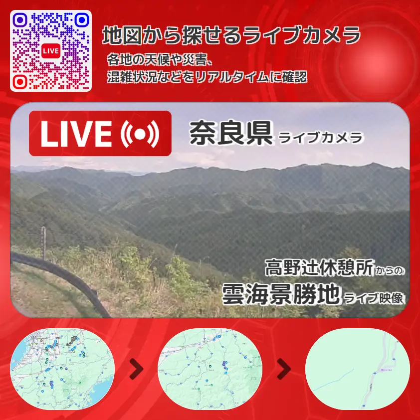 高野辻休憩所(奈良県道53号高野天川線・村道上高野線三差路)から、雲海景勝地(野迫川村雲海スポット)が確認できるライブカメラです。