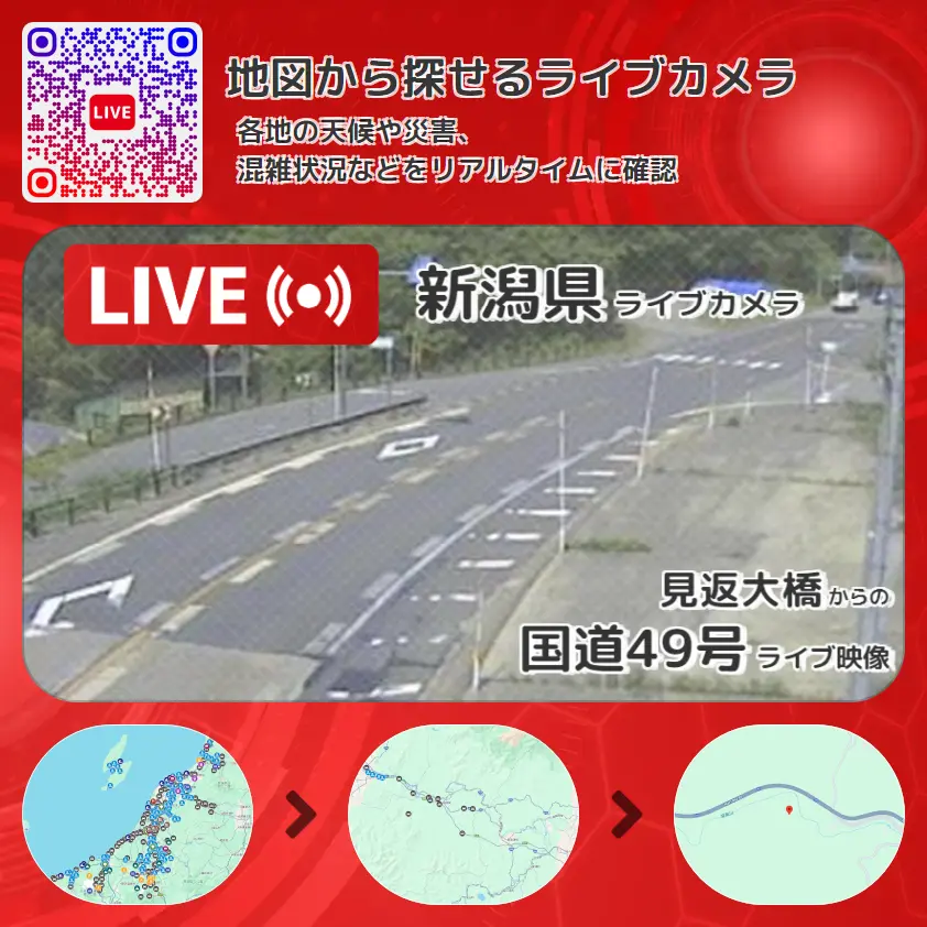 新潟県 「国道49号」ライブ映像(見返大橋 設置カメラ) ライブカメラ 監視カメラ