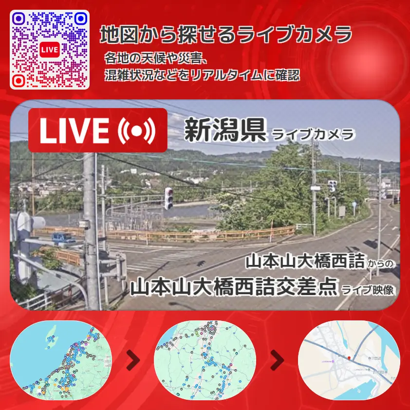 新潟県 「山本山大橋西詰交差点」ライブ映像(山本山大橋西詰 設置カメラ) ライブカメラ 監視カメラ