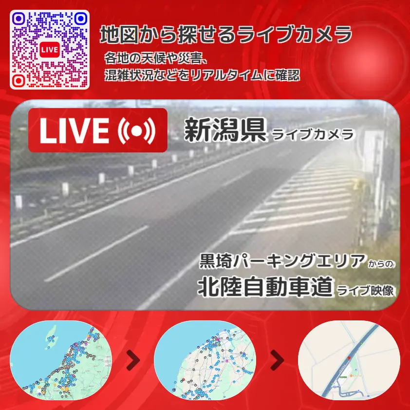 | 映像先 | 北陸自動車道(北陸道) 巻潟東インターチェンジ(巻潟東IC)~新潟西インターチェンジ(新潟西IC) |