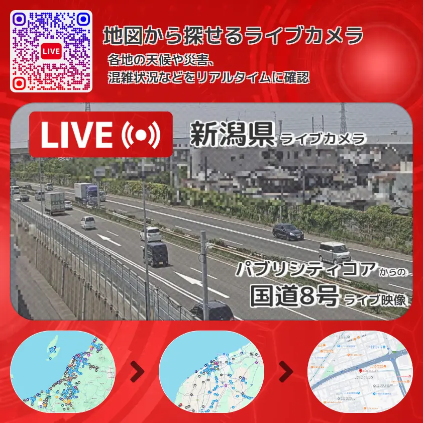 パブリシティコアから、国道8号(新潟東西道路・新潟バイパス)が確認できるライブカメラです。