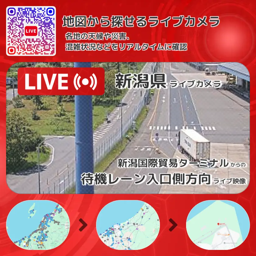 新潟国際貿易ターミナルから、待機レーン入口側方向が確認できるライブカメラです。