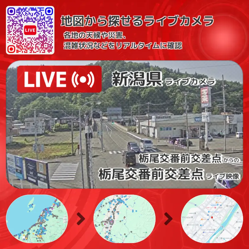 栃尾交番前交差点の他に、栃尾トンネルや周辺の気象状況も併せてチェックすることが可能で、台風・大雨・地震などの災害による被害状況も把握することができます。