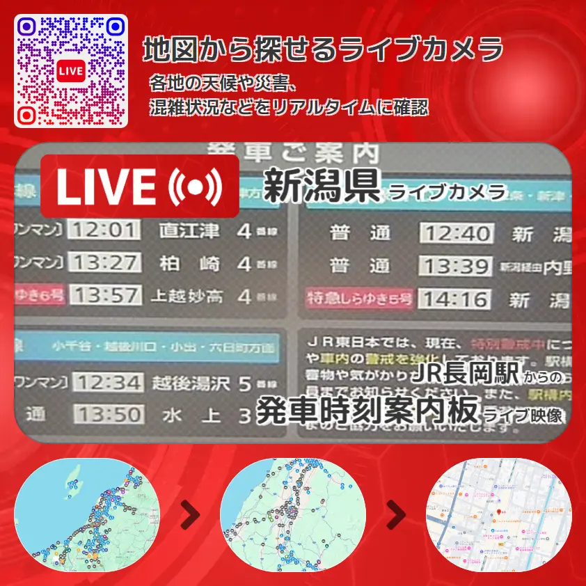 JR長岡駅から、発車時刻案内板が確認できるライブカメラです。