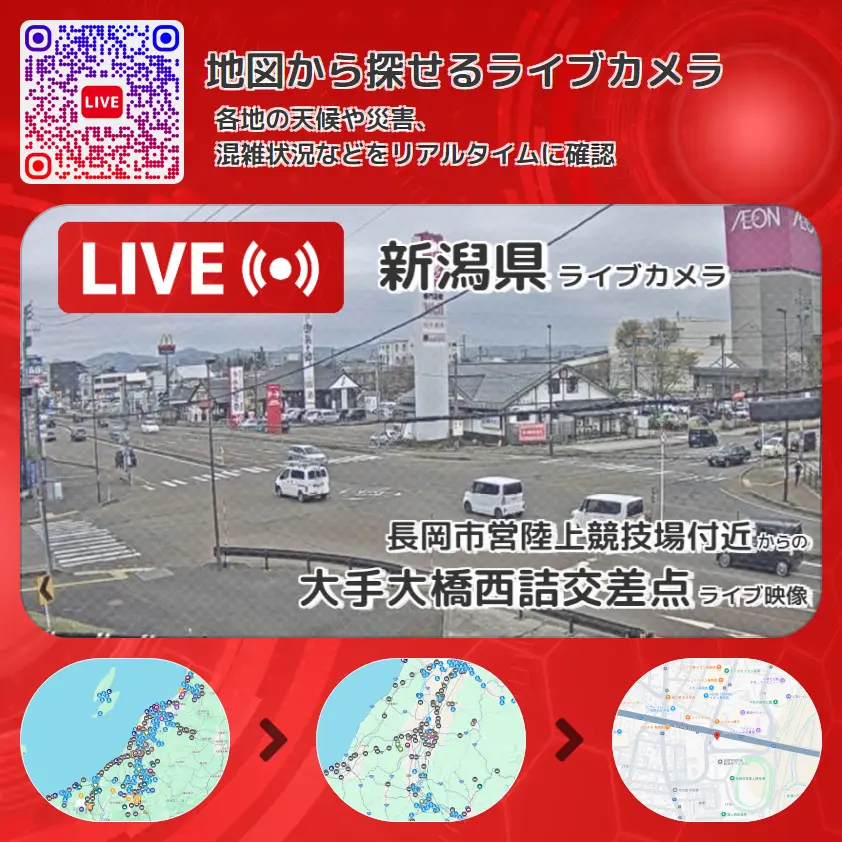 長岡市営陸上競技場付近から、大手大橋西詰交差点が確認できるライブカメラです。