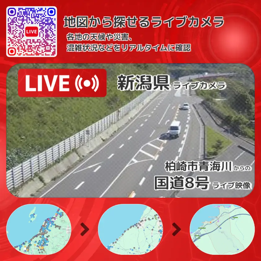 柏崎市青海川から、国道8号が確認できるライブカメラです。