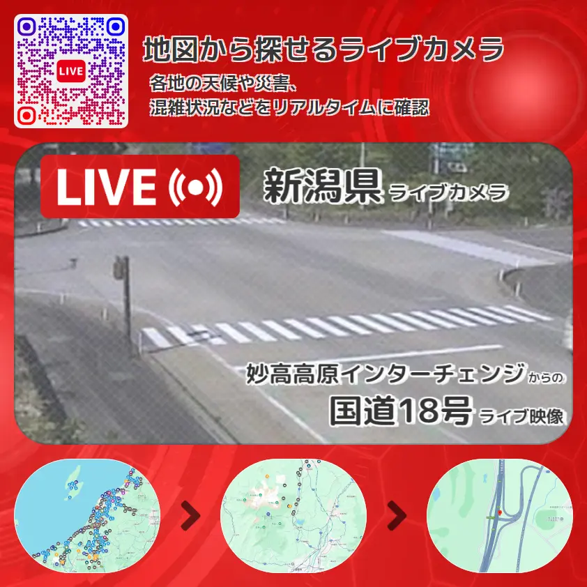 妙高高原インターチェンジ(妙高高原IC)から、国道18号が確認できるライブカメラです。