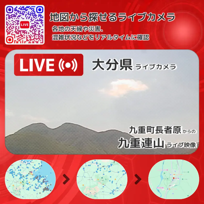 九重町長者原から、九重連山(三俣山・硫黄山)方面が確認できるライブカメラです。