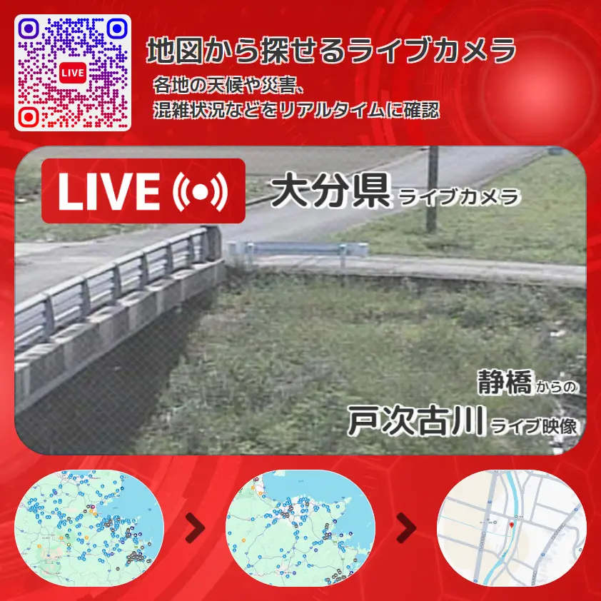 静橋から、戸次古川が確認できるライブカメラです。