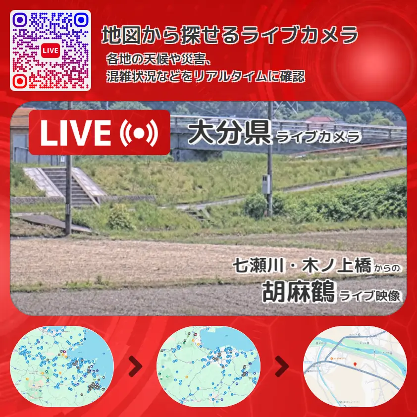 大分県 「胡麻鶴」ライブ映像(七瀬川・木ノ上橋 設置カメラ) ライブカメラ 監視カメラ