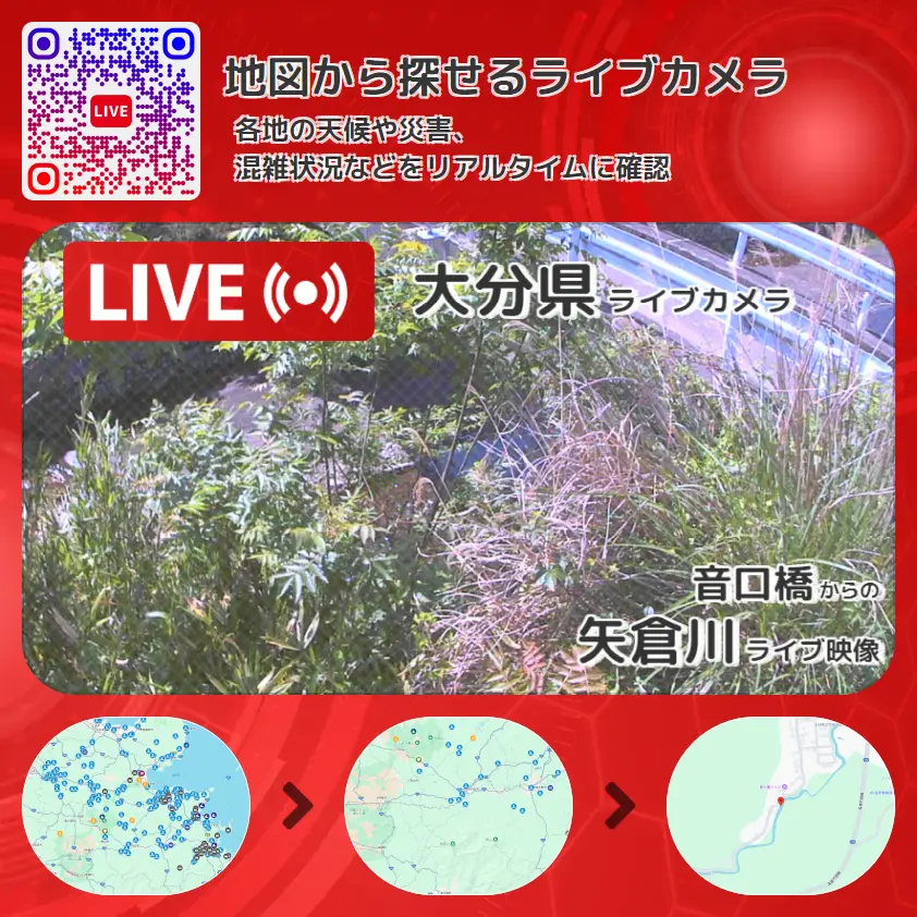 矢倉川の他に、音口橋や周辺の気象状況も併せてチェックすることが可能で、台風・大雨・地震などの災害による被害状況も把握することができます。