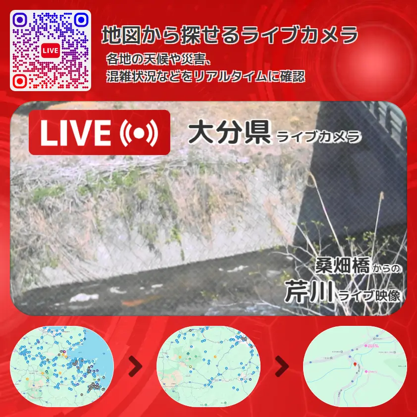 芹川の他に、桑畑橋や周辺の気象状況も併せてチェックすることが可能で、台風・大雨・地震などの災害による被害状況も把握することができます。