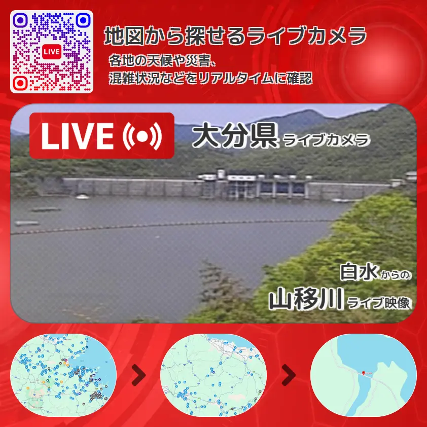 山移川の他に、耶馬溪ダム(耶馬渓ダム)や周辺の気象状況も併せてチェックすることが可能で、台風・大雨・地震などの災害による被害状況も把握することができます。