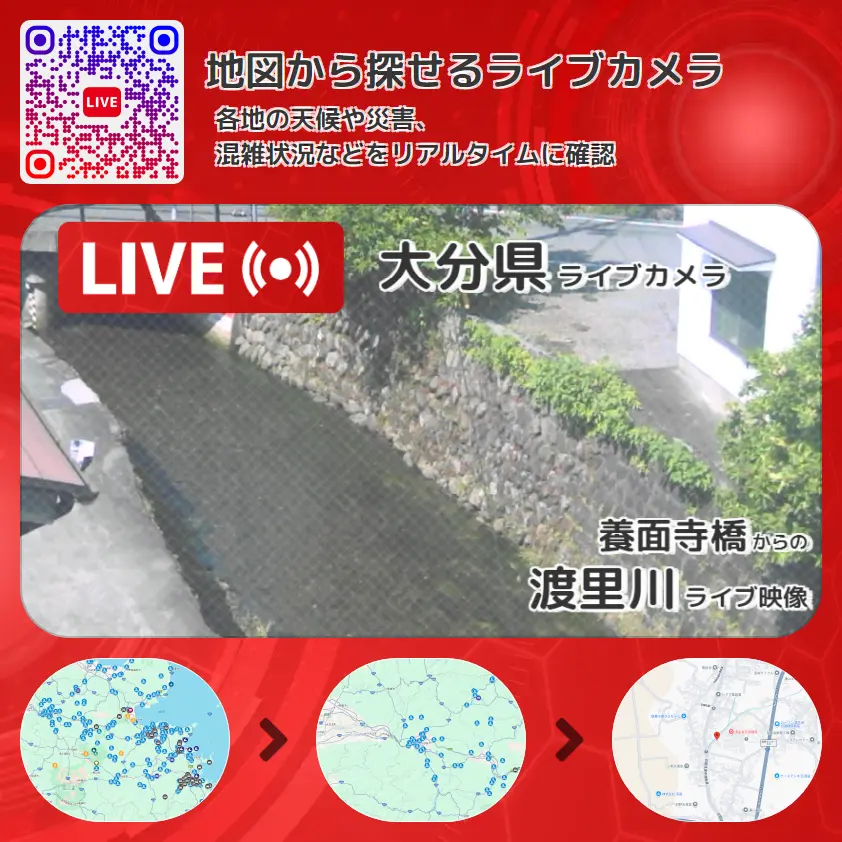 大分県 「渡里川」ライブ映像(養面寺橋 設置カメラ) ライブカメラ 監視カメラ