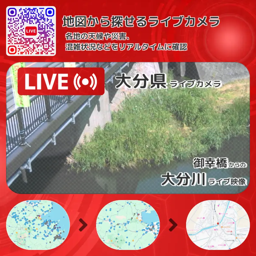 御幸橋から、大分川が確認できるライブカメラです。