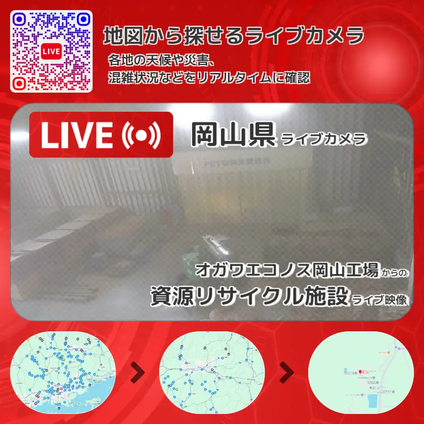 オガワエコノス岡山工場から、資源リサイクル施設が確認できるライブカメラです。