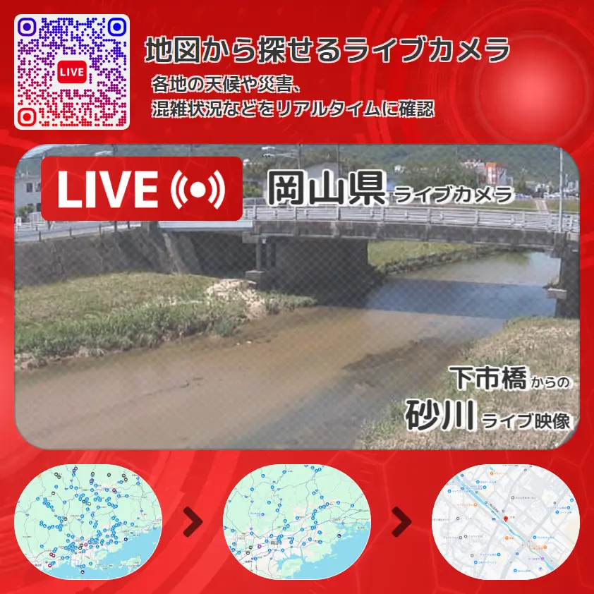 岡山県 「砂川」ライブ映像(下市橋 設置カメラ) ライブカメラ 監視カメラ