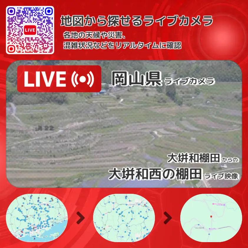大垪和棚田から、大垪和西の棚田(日本棚田百選)が確認できるライブカメラです。