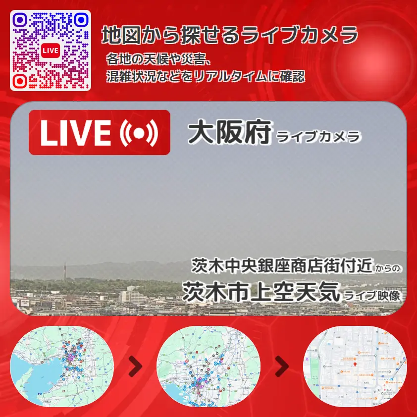 茨木中央銀座商店街付近から、茨木市上空天気が確認できるライブカメラです。