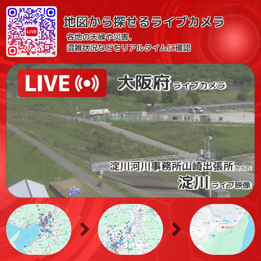 淀川河川事務所山崎出張所から、淀川が確認できるライブカメラです。