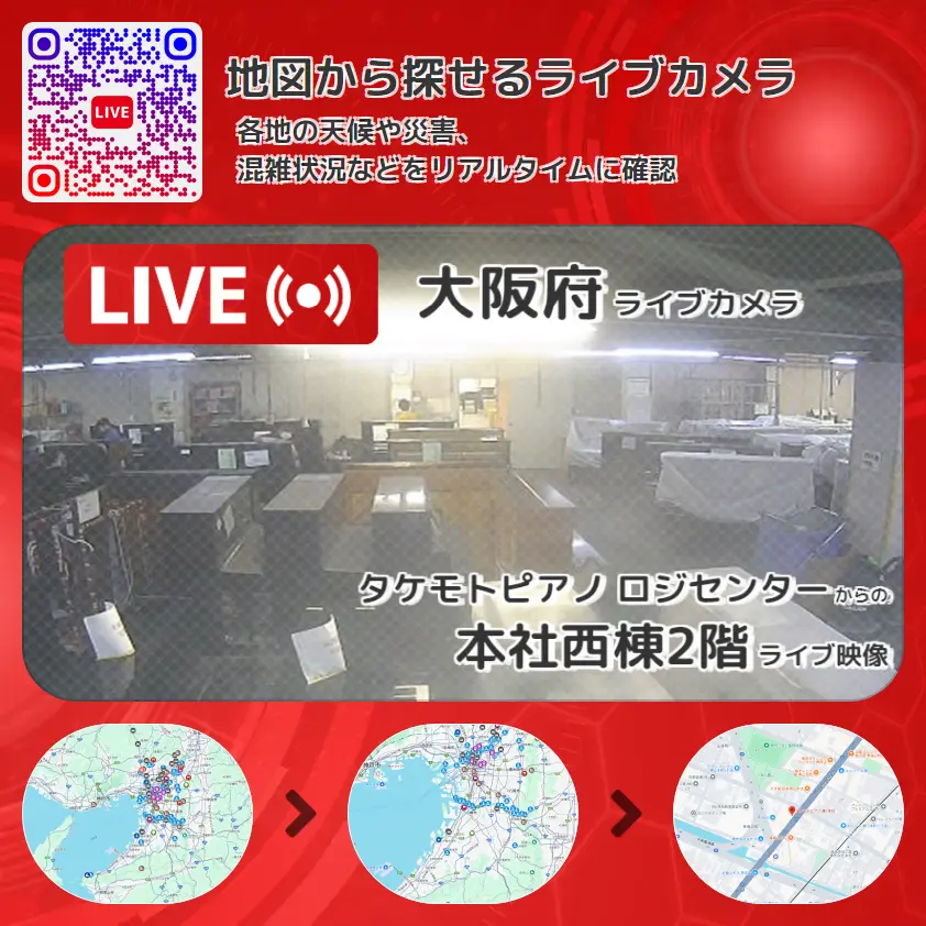 大阪府 「本社西棟2階」ライブ映像(タケモトピアノ ロジセンター 設置カメラ) ライブカメラ 監視カメラ