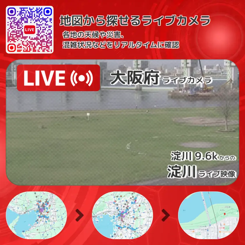 大阪府 「淀川」ライブ映像(淀川 9.6k 設置カメラ) ライブカメラ 監視カメラ